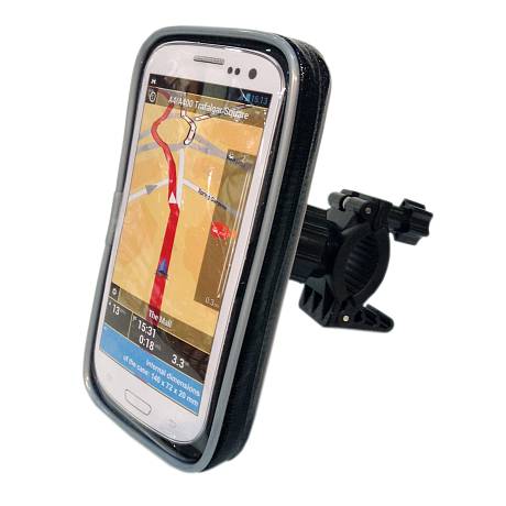 Короткая и жесткая штанга оптимально фиксирует смартфоны, коммуникатор, сотовые телефоны на руле мотоцикла.