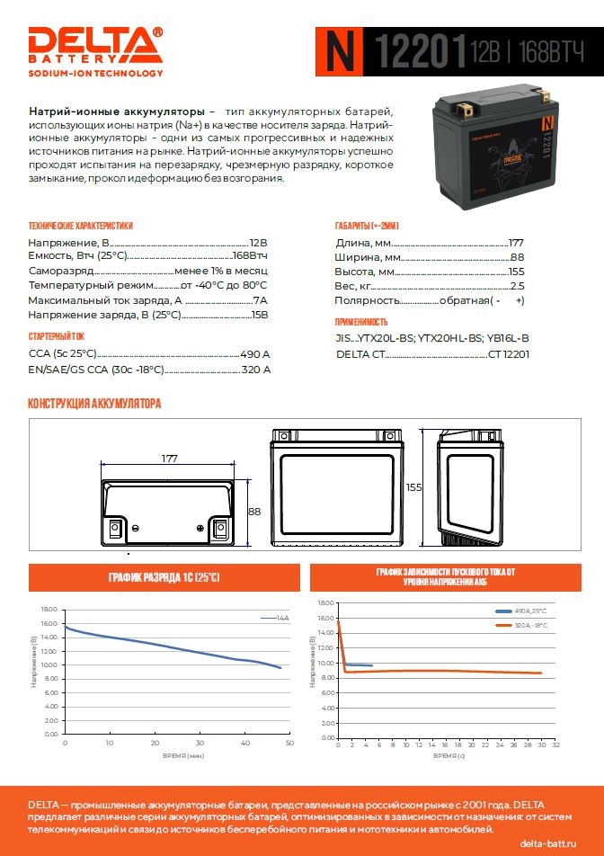 Натрий-ионные аккумуляторы – тип аккумуляторных батарей, использующих .. Аккумуляторная батарея Delta N12201 (YTX20HL-BS, YTX20L-BS)