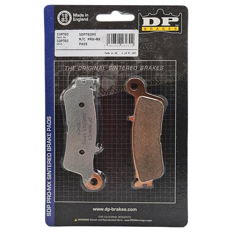 Тормозные колодки DP-Brake SDP703 Колодки High Friction MX, Off-road и ATV Разработано профессиональными гонщиками -Высокий в отрасли показатель трения «HH+» без увеличения износа -Прогрессивное ощущение -Быстрый отклик – и великолепная обратная связь -Высокотехнологичный керамический теплозащитный экран – отсутствие снижения эффективности тормозов -Никакой тормозной пыли. -Никакого шума. Высокоэффективный фрикционный состав с рейтингом HH, быстрая приработка без снижения эффективности торможения, керамический теплозащитный экран, высокое начальное сцепление, мгновенный отклик.