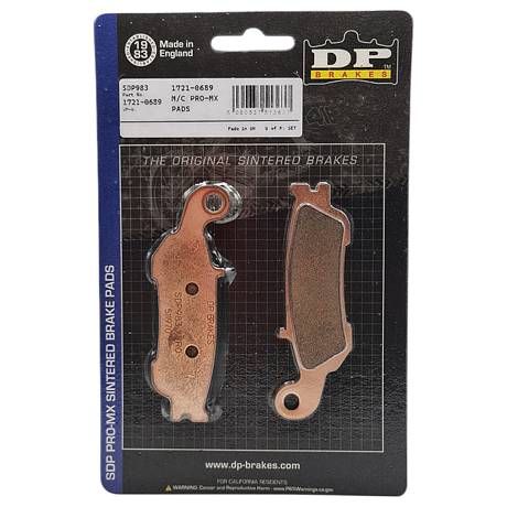 Тормозные колодки DP-Brake SDP983 Колодки High Friction MX, Off-road и ATV Разработано профессиональными гонщиками -Высокий в отрасли показатель трения «HH+» без увеличения износа -Прогрессивное ощущение -Быстрый отклик – и великолепная обратная связь -Высокотехнологичный керамический теплозащитный экран – отсутствие снижения эффективности тормозов -Никакой тормозной пыли. -Никакого шума. Высокоэффективный фрикционный состав с рейтингом HH, быстрая приработка без снижения эффективности торможения, керамический теплозащитный экран, высокое начальное сцепление, мгновенный отклик.