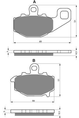 AD - колодки начального уровня. Подходят для дорожных мотоциклов до 600, или в качестве только задних для 600+.