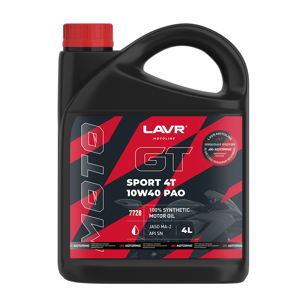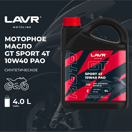 100% синтетический материал с высокой износостойкостью позволяет эксплуатиро..Моторное масло LAVR MOTO GT SPORT 4T 10w40 4л
