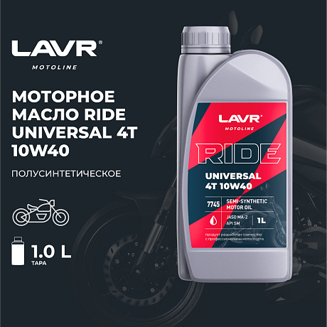 Моторное масло LAVR MOTO RIDE UNIVERSAL 4T 10W40 SM 1л