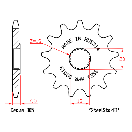 Звезда стальная ведущая MRP SteelStar E1 30513 (JTF427.13)