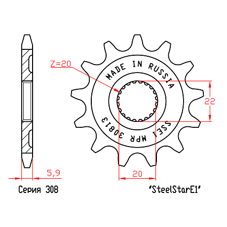 Звезда стальная ведущая MRP SteelStar E1 30813 (JTF1590.13)