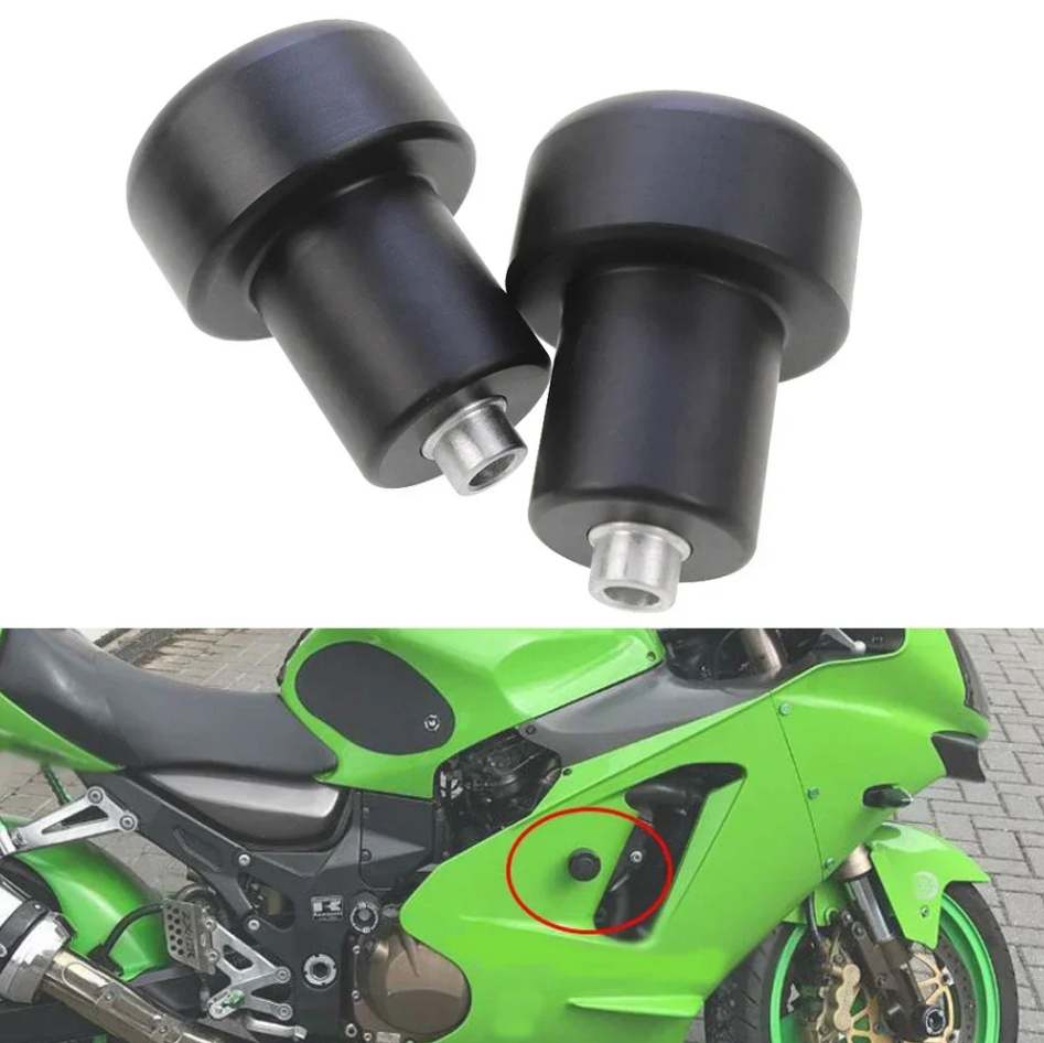 Слайдеры на раму для мотоцикла Kawasaki ZX6, ZX-6R, ZX9, ZX-9R, ZX12, ZX-12R 1998-2002 из делрин..Слайдеры на раму для мотоцикла Kawasaki ZX6, ZX-6R, ZX9, ZX-9R, ZX12, ZX-12R 1998-2002 из делрина являются надежной и доступной защитой вашего мотоцикла. В случае падения удар принимает именно слайдер, защищая такие детали мотоцикла как зеркала, пластик, рычаги управления и др.